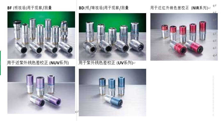 璃觀察真空爐內(nèi)的玻璃厚度校正透鏡G Plan Apo系列等,近紅外~可視~紫外的各種波長(zhǎng)范圍的物鏡種類(lèi)。